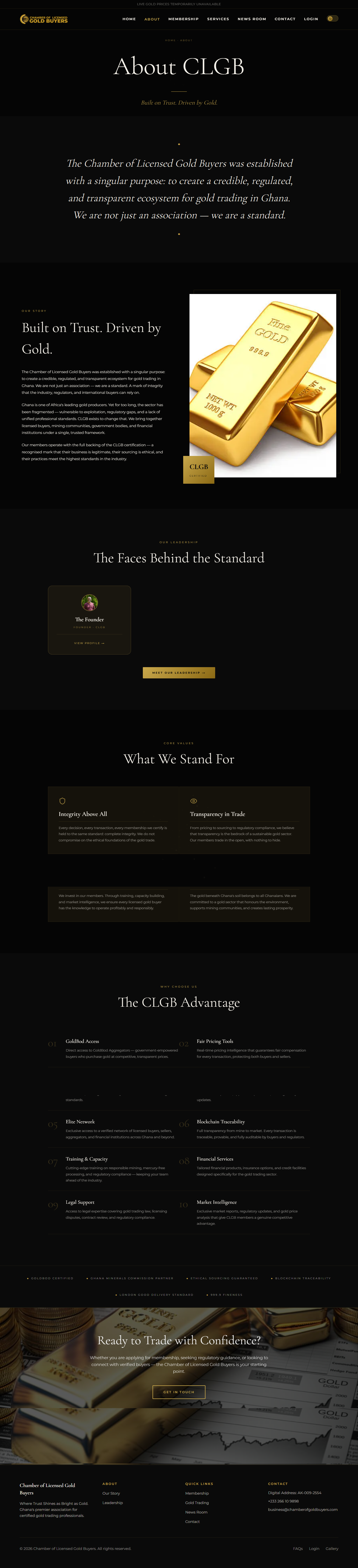 Build a trusted digital home for Ghana's foremost gold trading association — one that commands institutional credibility.